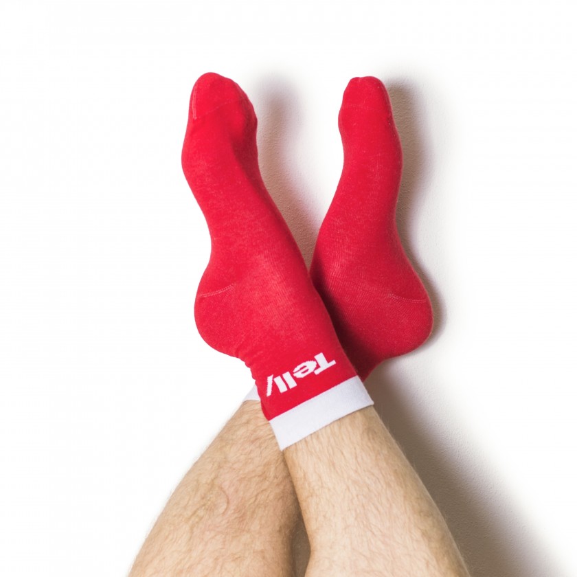 Červené ponožky ve stylu Telly.