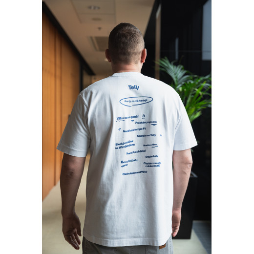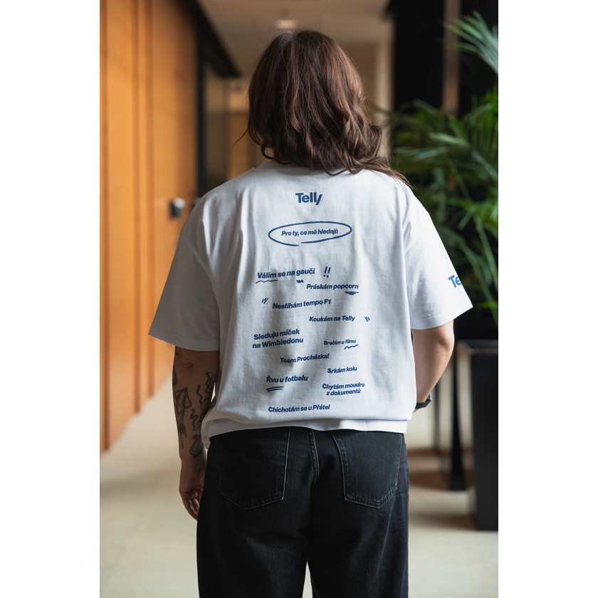 Více informacíBílé bavlněné tričko s kulatým výstřihem a potiskem Telly. Tabulka s rozměry ke stažení zde