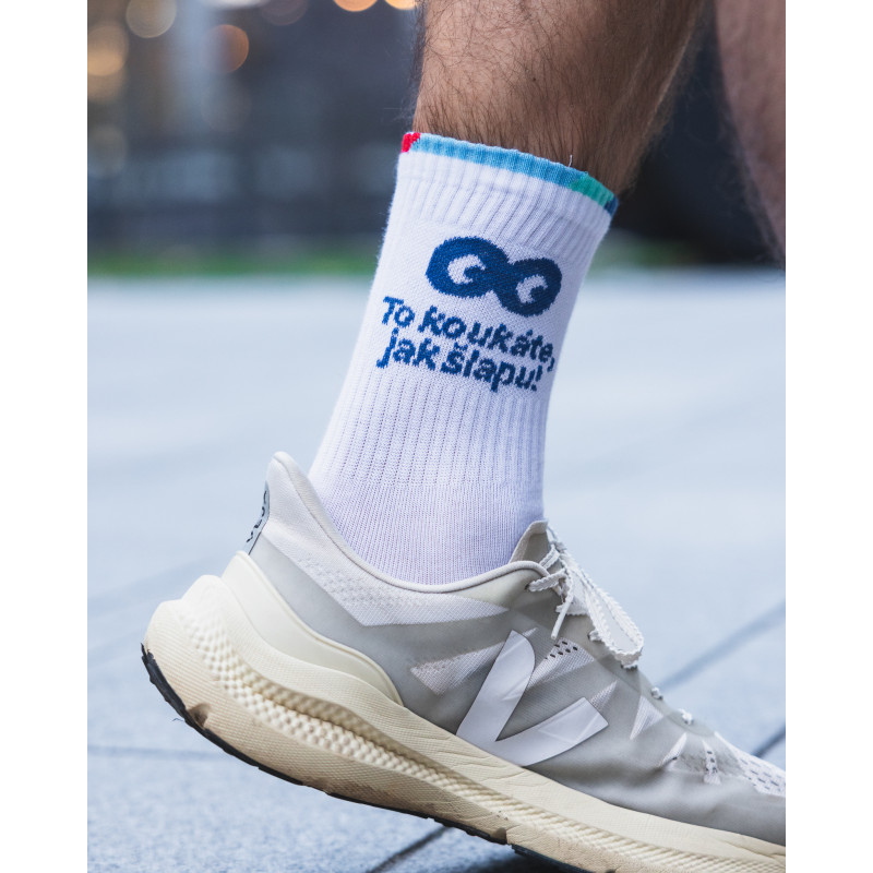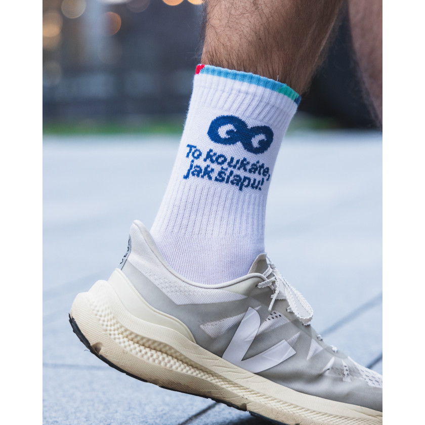 Tyhle ponožky nejsou pro žádné bábovky, i když v nich nejdál dojdete asi pro bábovku do kuchyně. Bílá klasika pro ty, co chtějí mít styl, i když zrovna jen přecházejí z gauče do lednice. Tak šlápněte do pedálů (nebo do papučí) a ukažte, kdo je tady pánem obýváku.
